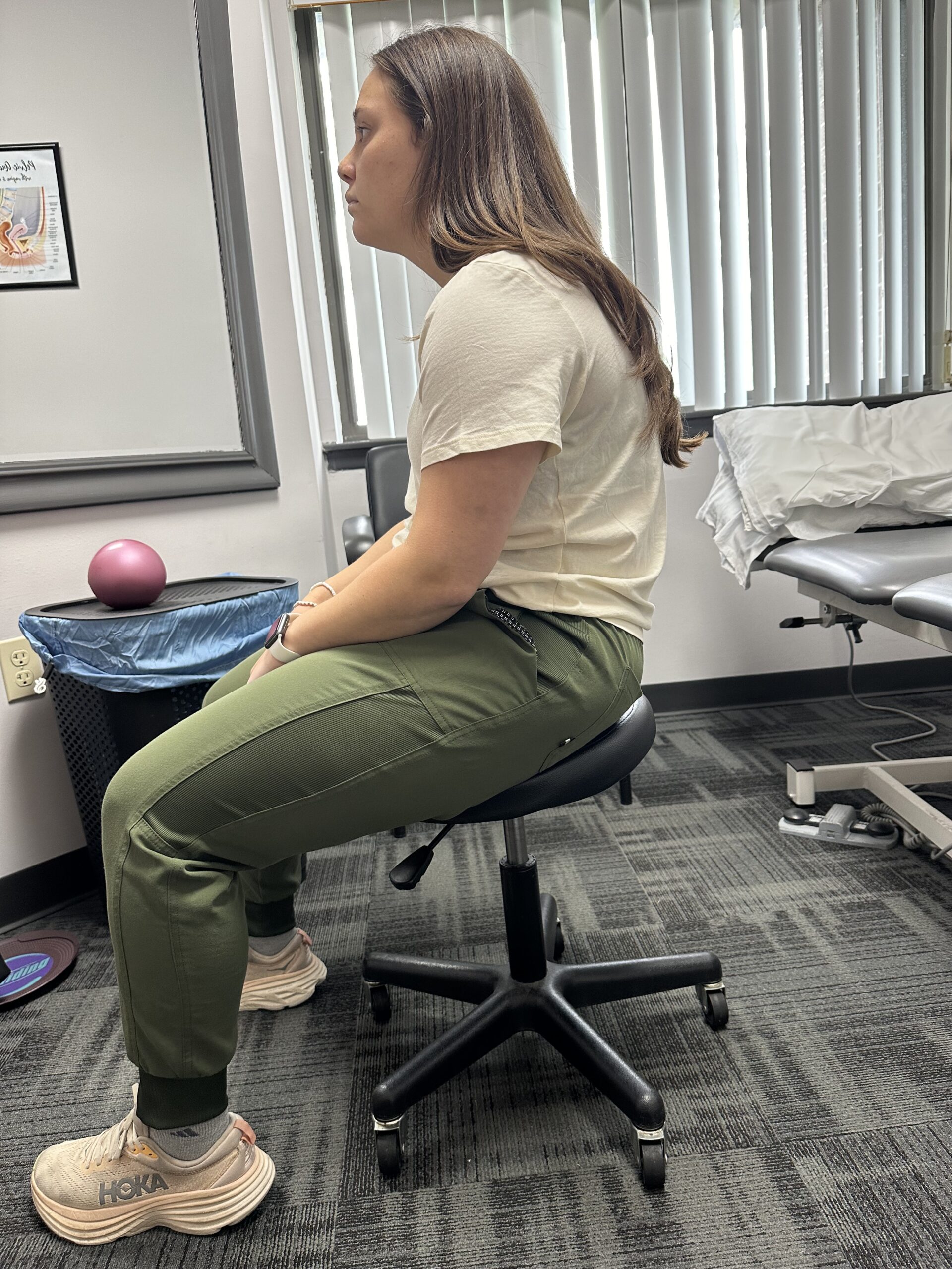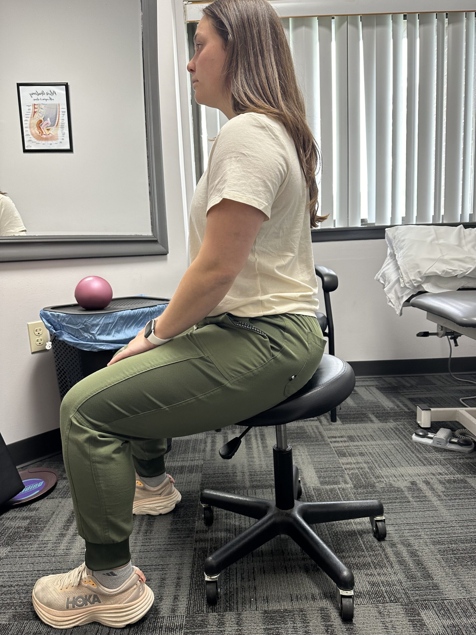 If experiencing these symptoms, adjust posture to avoid leaning backwards and tucking the pelvis under which would increase pressure directly onto the tailbone. It is also recommended to avoid prolonged sitting by standing up or adjusting position every 30 min-1 hour, or use a cushion to sit on with the back portion cut out (donut cushion also acceptable if section cut out for tailbone). If issues remain or techniques don’t work as hoped, seek out a PT for a more in-depth assessment of posture, mobility, and strength to identify and address any other impairments that might be contributing and provide a more individualized plan for symptom management and pain relief.